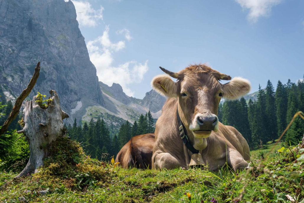 Viele Wege führen zur Füssener Hütte und von dort in die umliegende Bergewelt. Die bequemste Variante vom Tal hinauf führt vom Musauer Ortsteil Roßschläg in zweieinhalb Stunden auf einem breiten Forstweg direkt zur Sonnenterrasse mit Gipfelblick. Zunächst geht es durch schöne, schattige Wälder mit kleinen Quellen und ein paar Ausblicken. Zwischendurch kann man auch einen beschilderten Abstecher zur Achsel unternehmen, einem kleinen Vorberg des Schlicke-Massiv, den Königin Marie ebenfalls bestiegen und daraufhin ihren Alpenrosenorden gegründet hat. Nach gut einer Stunde öffnet sich eine völlig neue Landschaft, die wie eine Filmkulisse wirkt: links des Weges die steilen Gipfel der Tannheimer Berge, mittig und rechts die lieblichen Weiden und Bergflanken, die im Juni und Juli besonders schön blühen. Dabei passiert man mehrere Hütten wie die Musauer Alm mit ihren vielen Schumpen, den Jungkühen, die hier ihren Sommer verbringen dürfen. Von hier ist es noch eine Stunde bis zur Füssener Hütte und die tolle Kulisse wandert ab jetzt immer mit.