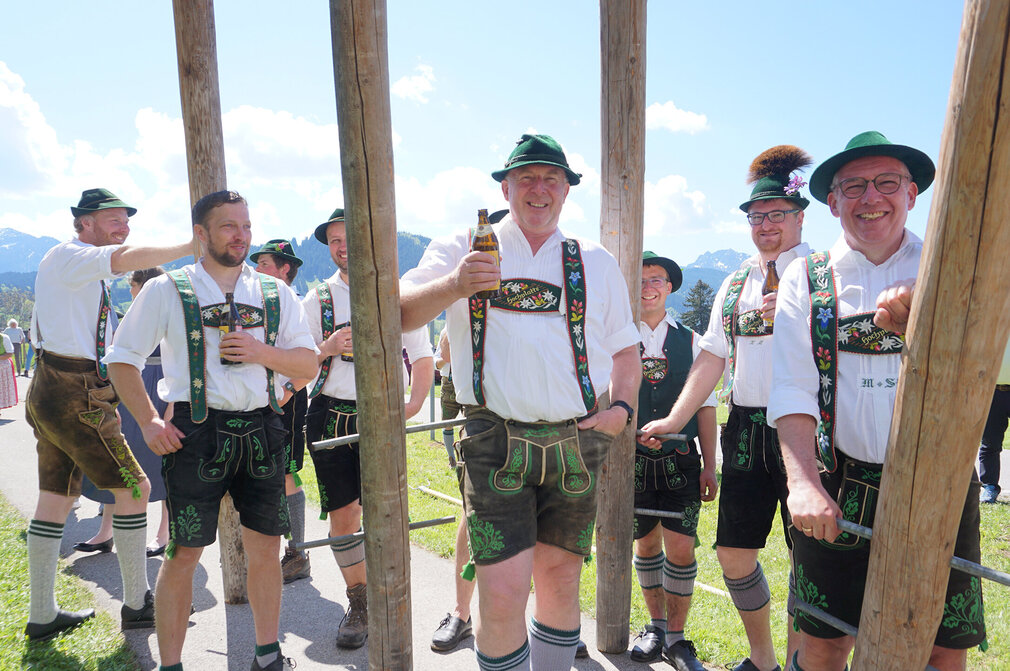 Was aber macht einen perfekten Maibaum denn aus? „Er muss frisch und ziemlich gerade sein. Lang, aber unten nicht zu stark, denn er darf aufgrund des Fundaments nur ungefähr einen halben Meter Durchmesser haben", meint Florian Grieser, Vorsitzender vom Trachtenverein Hochplatte Buching, dessen Mitglieder das Maibaumaufstellen seit 1969 organisieren. Das passende Exemplar dafür zu finden, ist gar nicht so einfach. Je höher am Berg, desto schmaler und länger wachsen die Fichten. „Im naheliegenden Kenzengebiet gäbe es welche, aber aufgrund der vielen Wegekurven könnten wir diese nicht im ganzen Stück ins Tal bringen."