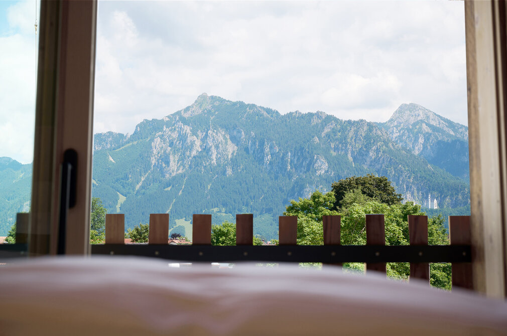 Das Beamtenhaus von 1908 haben Laura Kössel und ihr Mann vor ein paar Jahren gekauft und saniert, um ein stadtnahes Feriendomizil anbieten zu können. In wenigen Minuten ist man mitten in Füssens Fußgängerzone mit ihren bunten Häuserfassaden, über denen das Hohe Schloss thront - oder in der Natur.