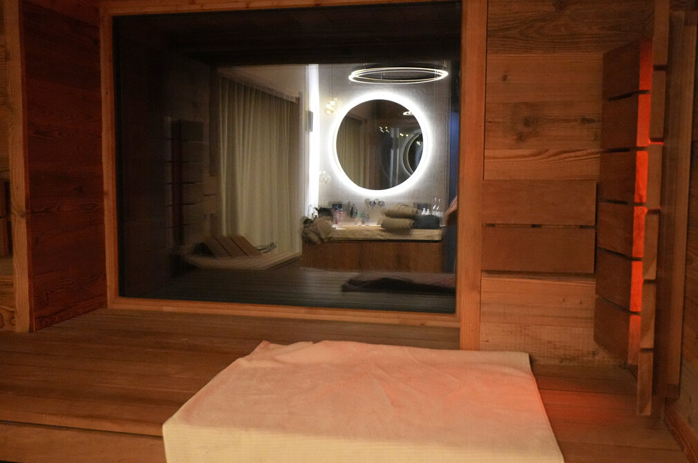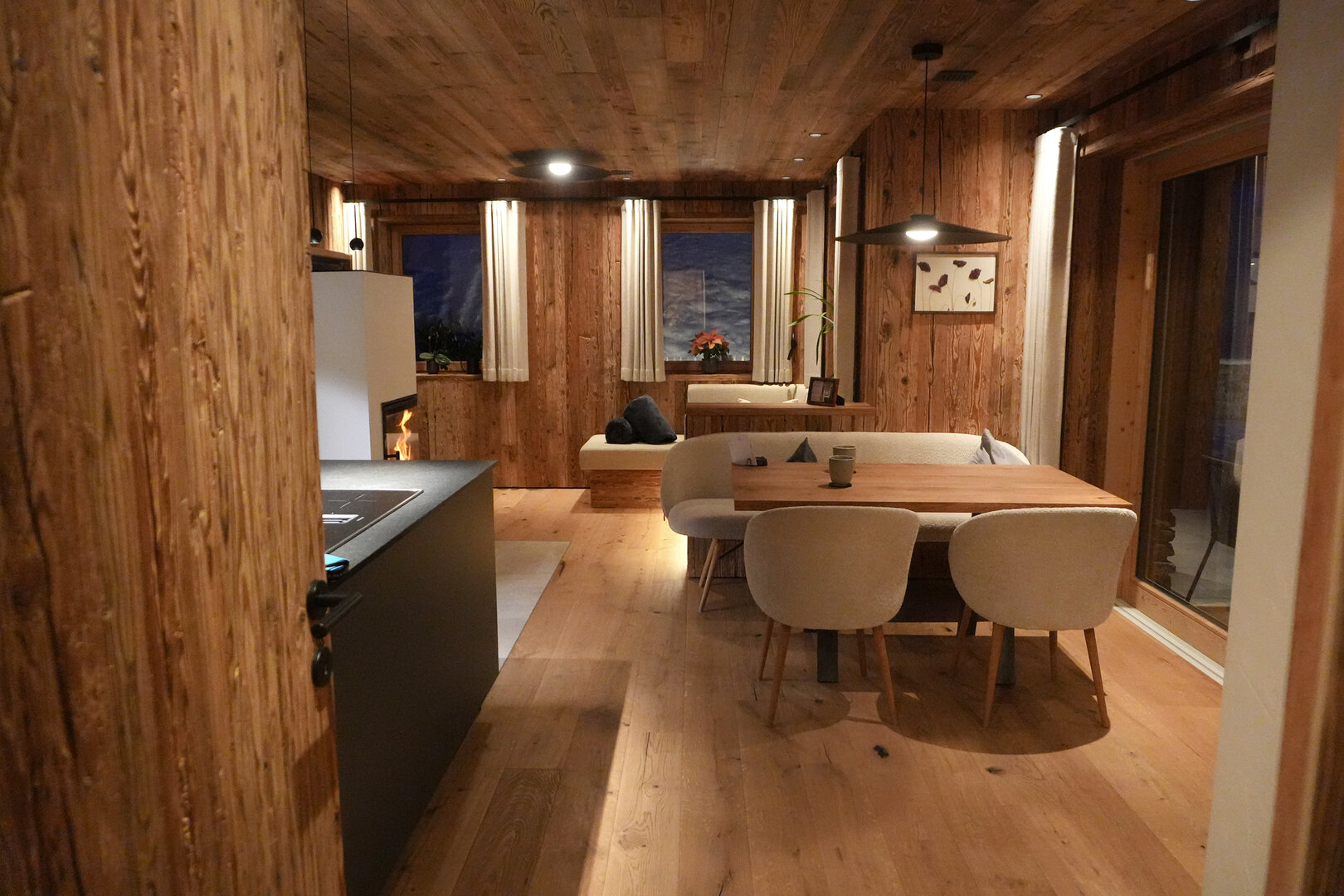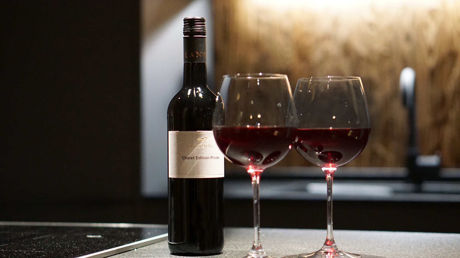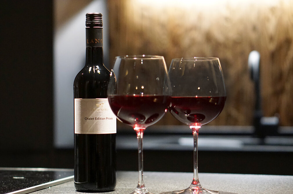 Drinnen knistert und knackt das Holz im Ofen und die von Scheibel ausgesuchten Weine mit eigenem Label, die dank Weinklimaschrank auf Serviertemperatur sind, machen die (Hütten-)Auszeit perfekt. Wer aus dieser Behaglichkeit abends nicht mehr raus will, kann in der voll ausgestatteten Küche selbst ein Menü zaubern, draußen grillen oder sich etwas Feines liefern lassen.