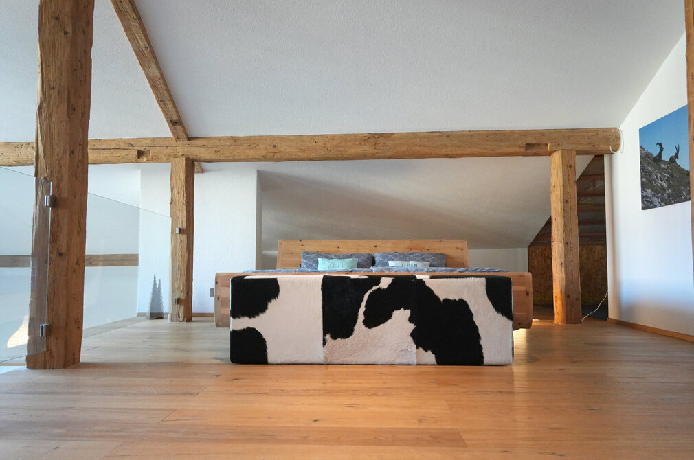 Das Gebäude mit der schlichten Holzfassade wirkt von außen eher unscheinbar, doch innen ist es eine kleine Offenbarung. Das moderne Loft mit viel Freiraum zeigt in vielen Details noch den historischen Ursprung des Gebäudes. Besitzerin Viktoria Mayer hat die 200 Quadratmeter große Wohnung sehr hochwertig und ganz nach ihrem Geschmack eingerichtet und wollte ursprünglich selbst hier einziehen - doch dann kam die Liebe dazwischen. Ein halbes Jahr nach dem Kauf lernte sie ihren heutigen Mann kennen und verließ Füssen.
