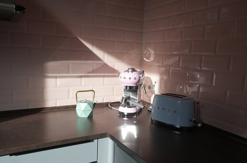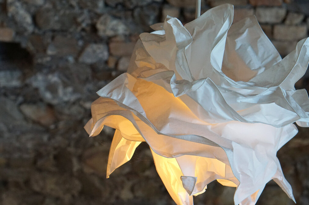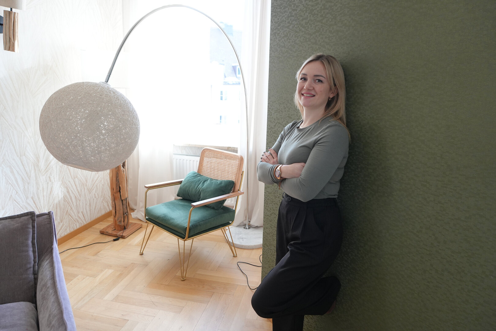 Gerahmte Bilder hängen hier nicht an den Wänden, die Fensterausblicke mit Bergpanorama und Häuserdächern sind die lebendige Kulisse, die immer wieder etwas anders aussieht. Kössel stattet die Räume gerne mit Tapeten aus - und hat eine ausgeprägte Vorliebe für Lampen. Deshalb hängen und stehen in jedem Raum gleich mehrere Leuchten, die je nach Tageszeit die Wohnung in eine andere Stimmung tauchen. „Ich mache ganz viel aus dem Bauchgefühl heraus und habe immer neue Ideen im Kopf, aber das mit den Tapeten und Leuchten habe ich definitiv von meiner Mama. Ich fand das schon immer schön. Vor der Renovierung waren hier in der Wohnung Tapeten mit Blumenmustern an den Wänden, aber ich wollte es etwas ruhiger haben. Und die Leuchten schenken ja nicht nur Helligkeit, sondern vor allem viel Wärme."