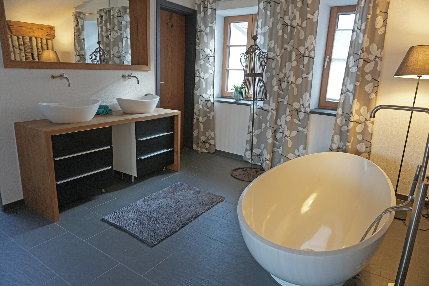 Vor allem Naturbegeisterte wissen es zu schätzen, dass sie direkt von der Haustür weg in Richtung Berge, Königsschlösser und entlang des Lechs wandern und Rad fahren können. Auch Mayer und ihr Mann wandern, so oft es geht, auf den Kalvarienberg hinauf, zum Dreiseenblick bei Pinswang oder durch das Faulenbacher Tal zum Alatsee. Ein Faible hat die Gastgeberin nicht nur für die Gipfel rund um Füssen, sondern auch für Hirsche. Die gehören für sie einfach zu den Bergen dazu und finden sich deshalb überall in der Wohnung wieder.