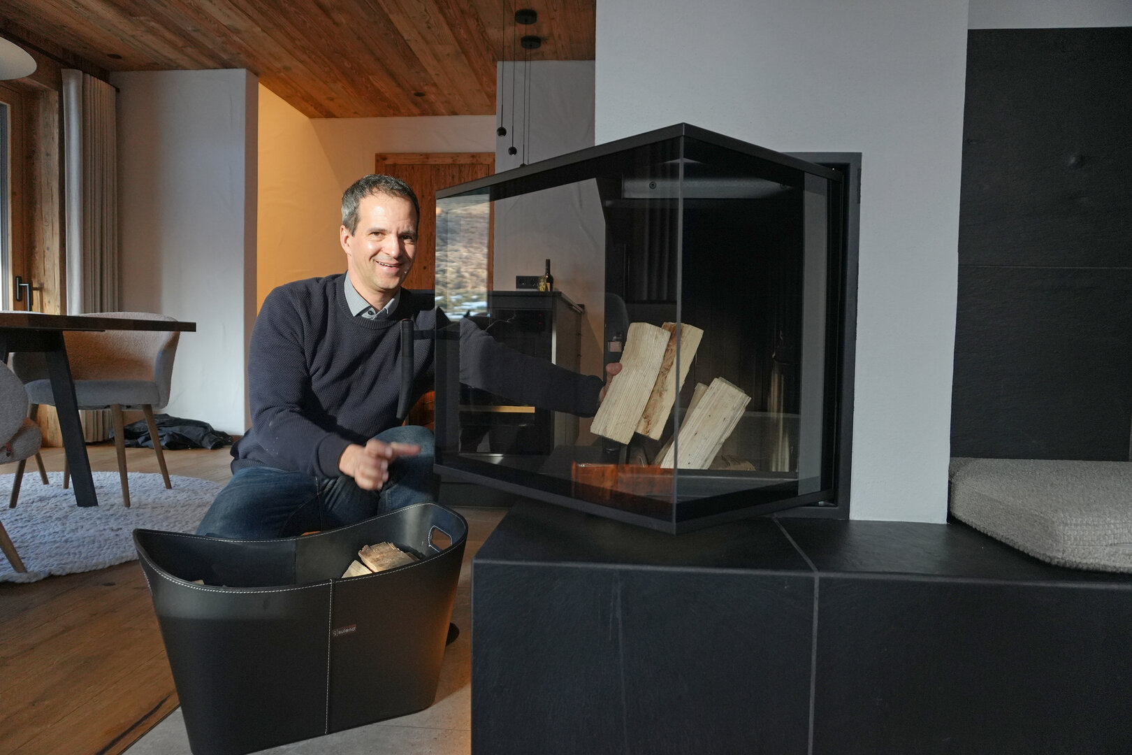 Ab und an gönnt sich der Füssener auch selbst eine Verschnaufpause in einem seiner Chalets, am liebsten im Waldblick. „Es ist einfach toll, sich das Kaminfeuer anzumachen und diese Ruhe zu genießen. Ich gehe selbst gerne in die Sauna und hier im Haus habe ich sie ganz für mich allein. Und morgens aufzuwachen und vom Bett aus in die Natur zu schauen, das liebe ich einfach."