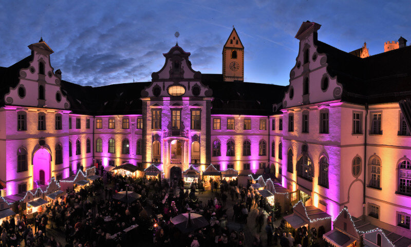Foto-Download: Blick von oben auf den Füssener Adventsmarkt (JPG, 4 MB). Bildnachweis: Füssen Tourismus und Marketing_Hubert Riegger